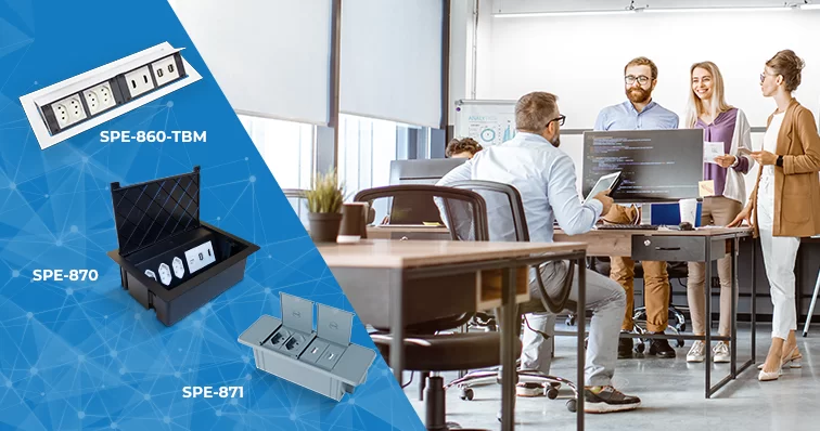 As caixas de tomadas para mobiliário são essenciais, principalmente quando há necessidade do uso de computadores, projetores e outros equipamentos, e ajudam a manter o ambiente arrumado e pronto para receber colaboradores e visitantes.
