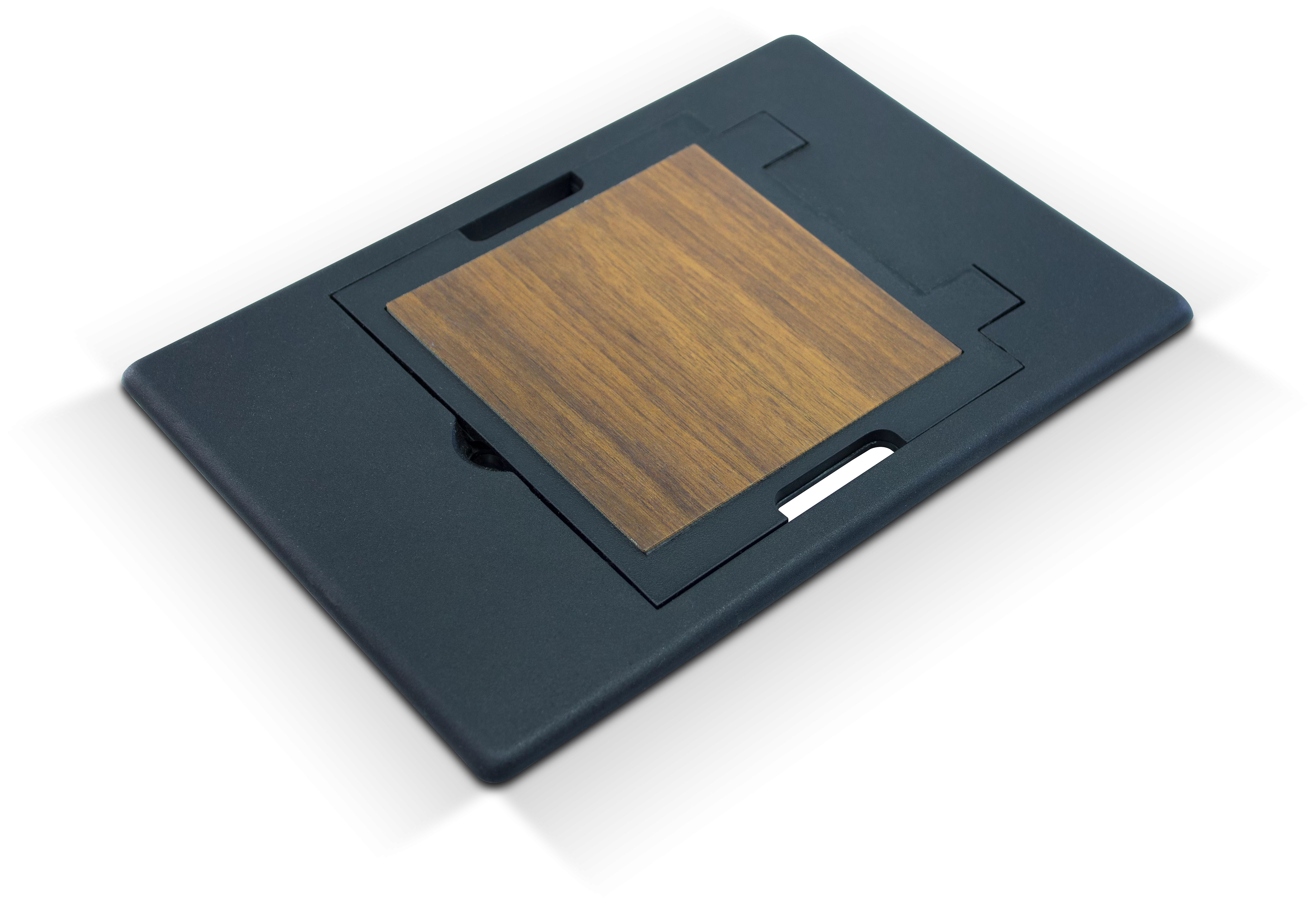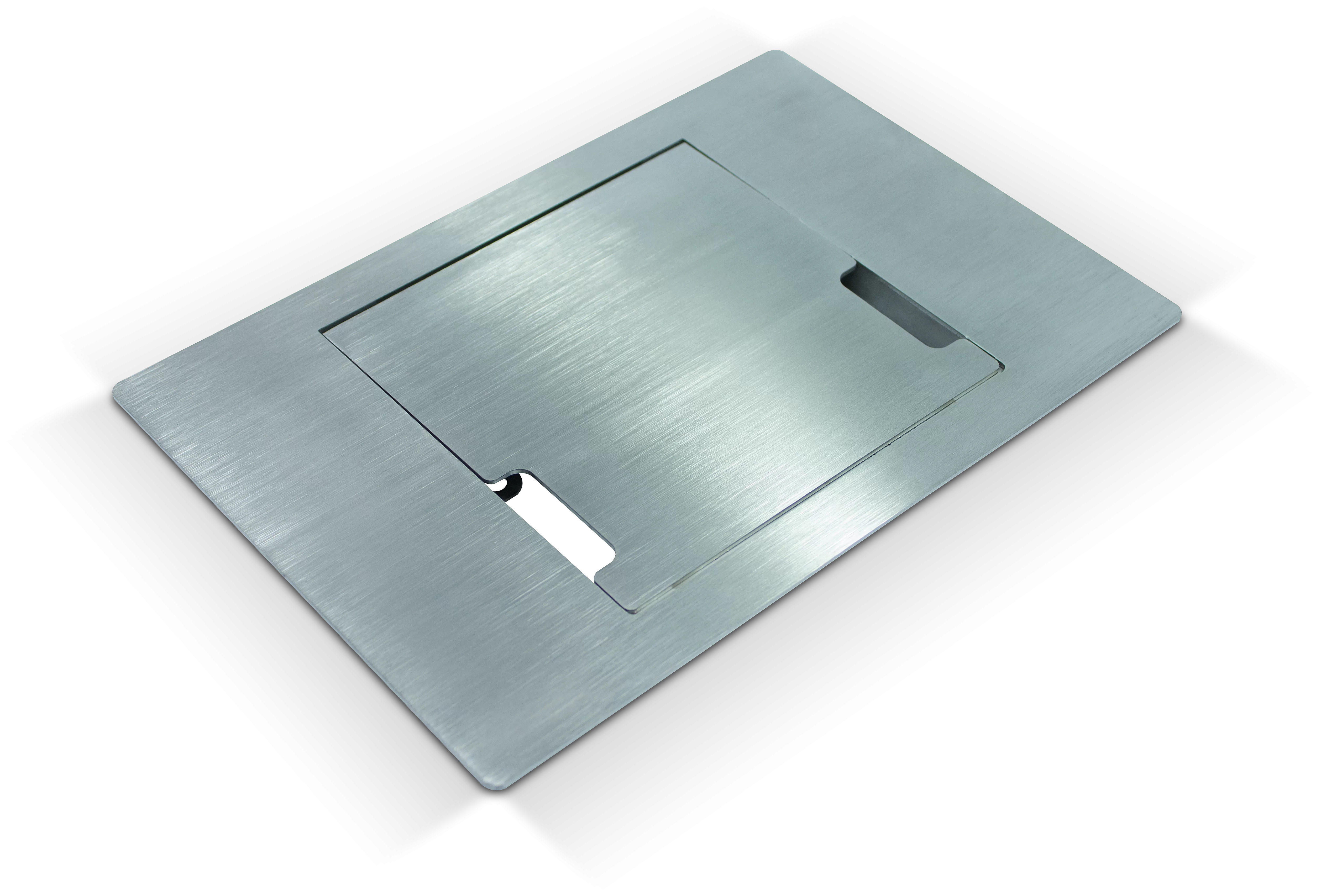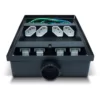 Caixa de tomadas com quatro pontos elétricos e quatro pontos de dados, para instalação em contrapiso.