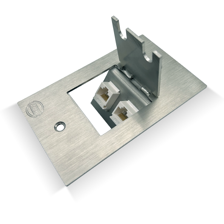 Espelho de piso com dois pontos de conexão de dados, indicado para caixa 4 x 2, para aplicação no contrapiso.