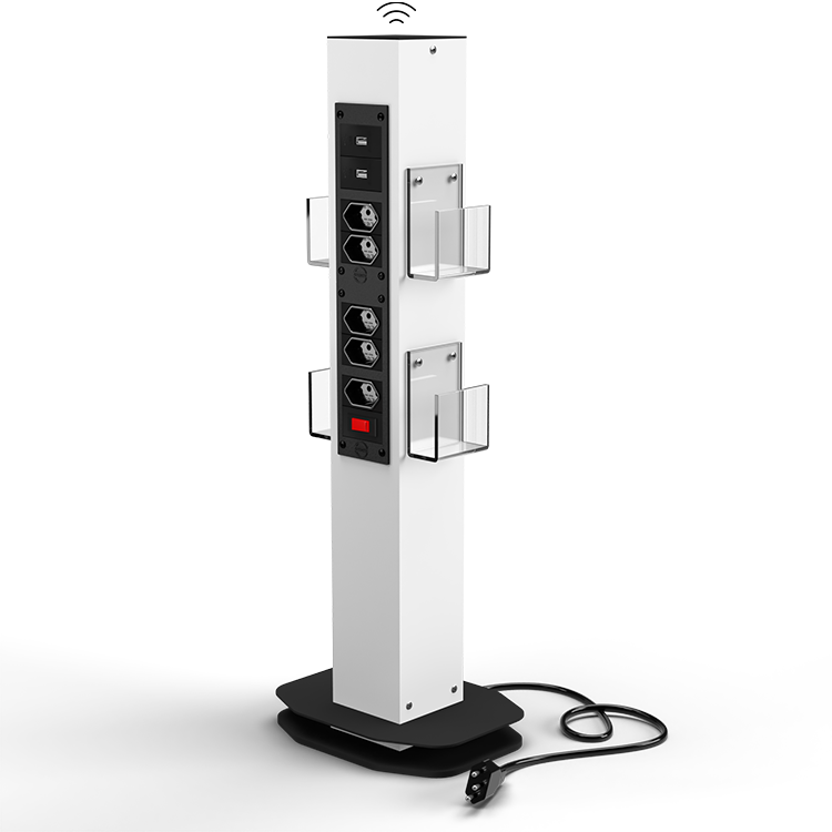 A versão mais completa da linha. Conta com 5 tomadas, 2 conectores USB e 1 ponto de carregamento por indução para celulares e dispositivos compatíveis. Conectividade de alto padrão com total sofisticação.
